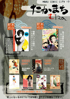 机上に全て並ばない可能性が高いので、お目当てのものが机上に無い場合は気軽に売り子にお尋ねください。