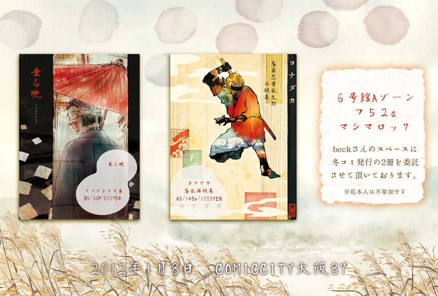 私本人は参加できませんが、お友達のbeckさんのスペースにて冬コミ発行の2冊を委託して頂く事となりました。