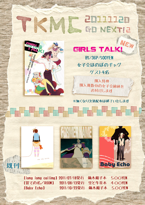 イナイレや残部の少ない既刊に関しては机に乗せていないと思いますので、ご希望の本が机上に無い場合は売り子にお尋ね下さいませ。